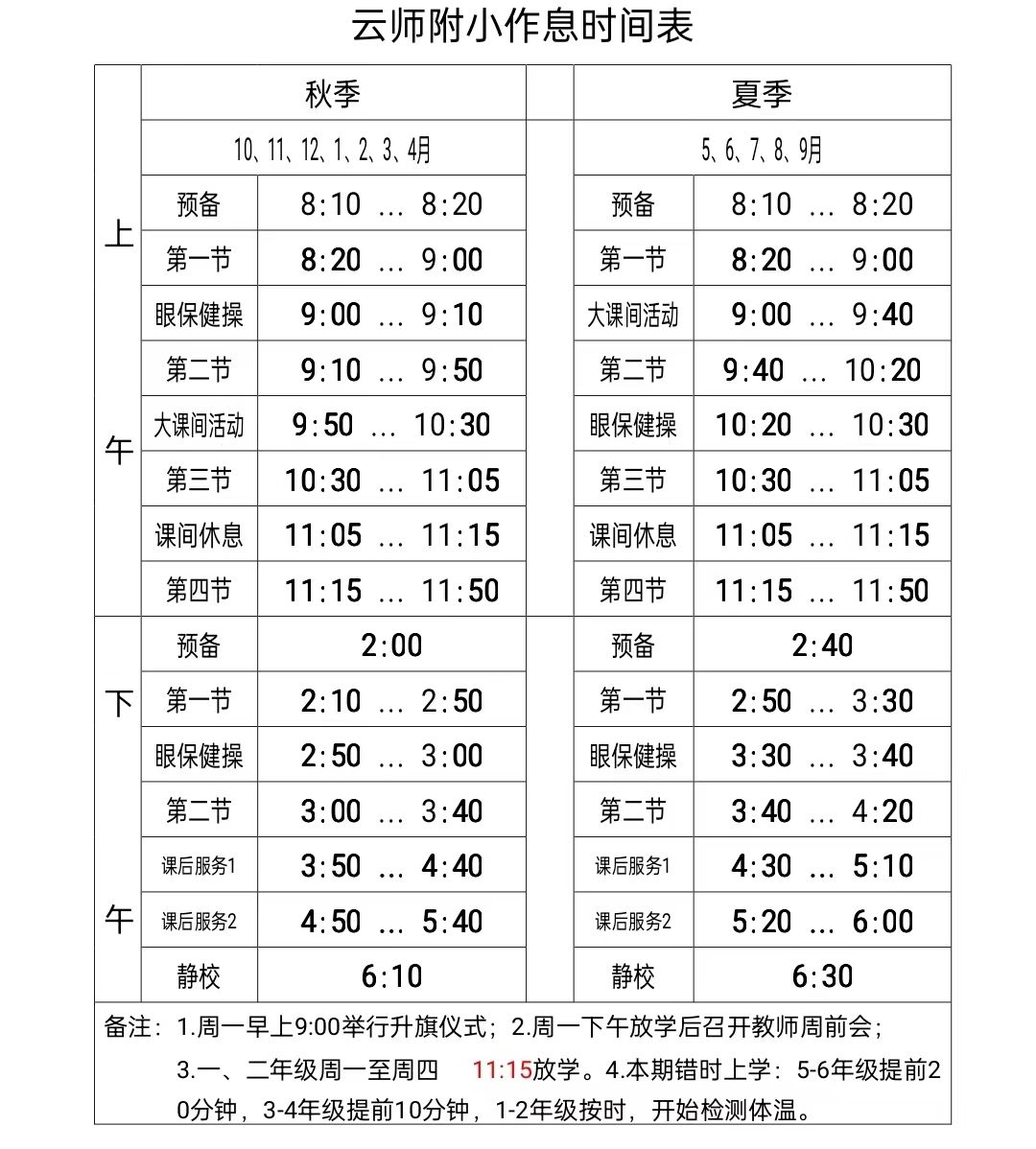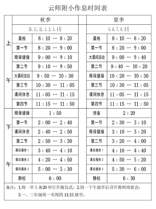 云师附小作息时间表
